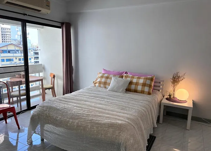 Als u in 1-slaapkamer Cozy 1Br Walk To Bts And Airport Rail Link Close To Malls M11 Bangkok appartement verblijft, kunt u de Wat Pho bereiken, gelegen op 3 km verderop. Gasten kunnen ontspannen en genieten van het uitzicht op het zwembad vanaf een terras van dit appartement van 75 m².